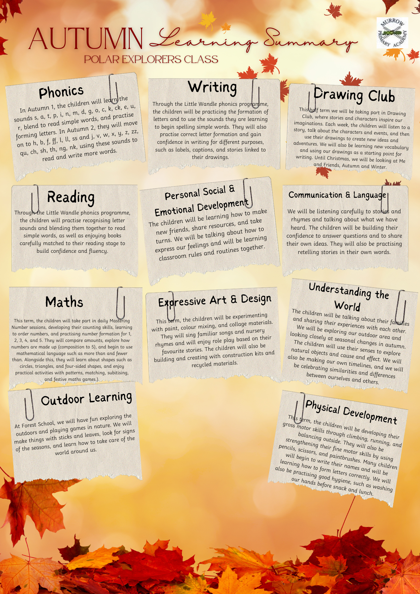 In Polar Explorers we learn through lots of different mini-topics. This ensures that children are offered a broad and balanced curriculum which effectively supports their learning and development across all areas of the Early Years Curriculum.